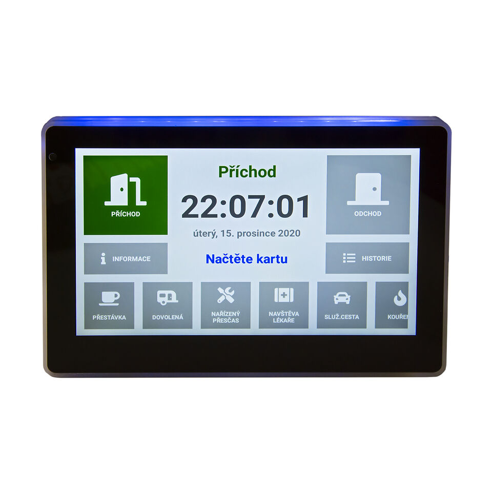 Komfortní biometrický terminál s dotykovým displejem GT800F nabízí přehledné zobrazení a rychlé ovládání především pro evidenci docházky. Veškeré zobrazení na displeji, včetně snadno nastavitelných zvuků, barev a grafických symbolů tlačítek, může být jednoduše uživatelsky definováno pro rychlou a přehlednou volbu operací. Umožňuje také zobrazení libovolných časových složek docházky, informací o přítomnosti osob a historie operací.