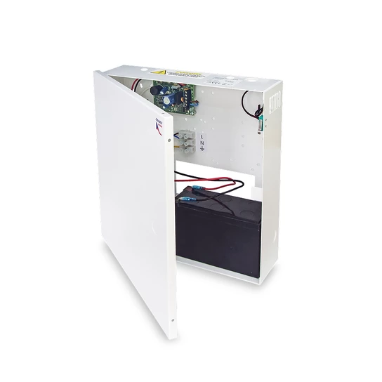Zálohovací zdroj 12V-1,7 A, doporučený akumulátor 12V/7 Ah, lze samostatně objednat modul OBZ01A pro ochranou před hlubokým vybitím akumulátoru.