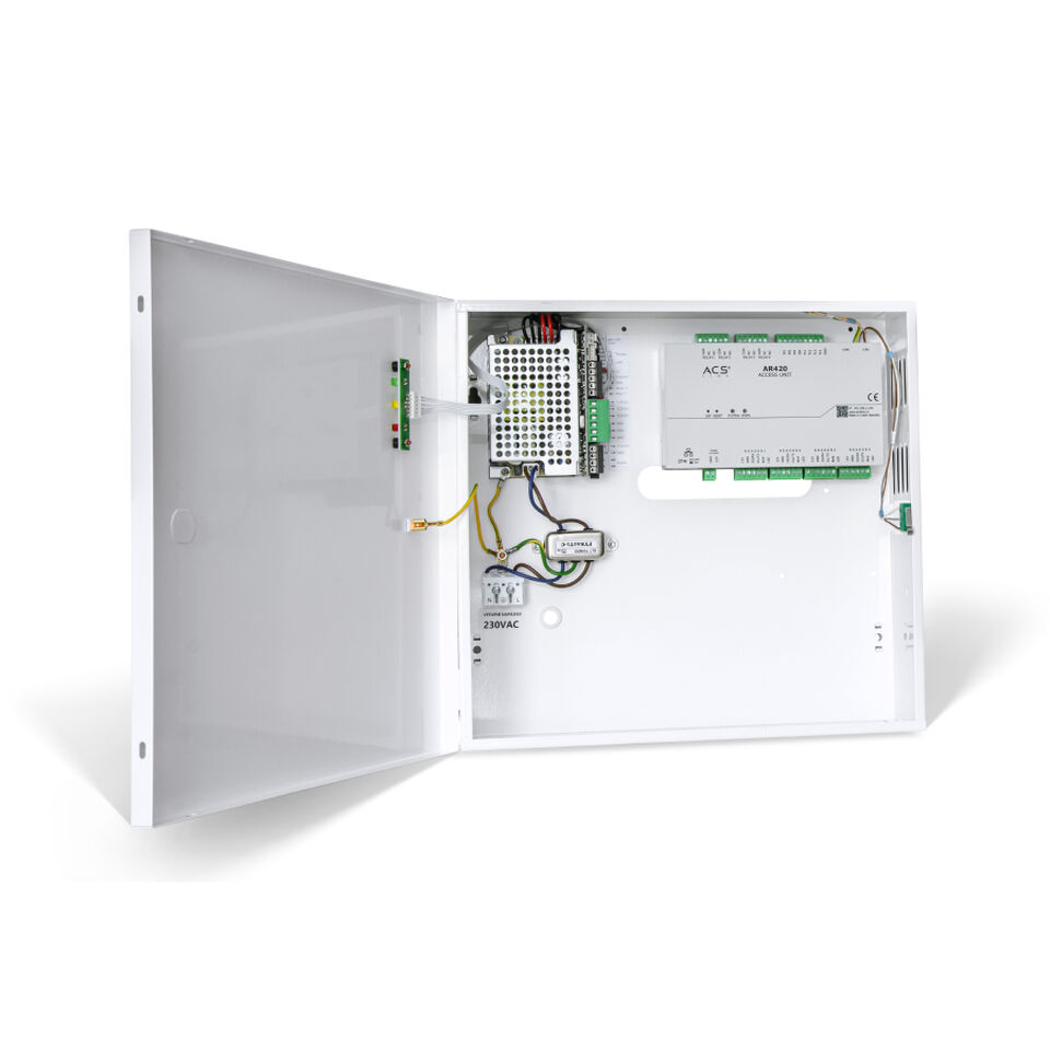 Řídící jednotka pro ovládání čtyř jednostranných vstupů nebo dvou oboustranných vstupů. Univerzální použití pro stavbu malých i rozsáhlých přístupových systémů. Připojit lze čtyři libovolné čtečky systému ACS-line nebo libovolné čtečky WIEGAND. Výstupní relé přímo ovládají dveřní zámky nebo turnikety. Pomocí vstupů lze sledovat a signalizovat stav ovládaných dveří. Veškerá konfigurace a ovládání probíhá z počítače. Přístupová práva se definují pomocí časových oken, což poskytuje neomezené možnosti pro vytváření schémat přístupů.