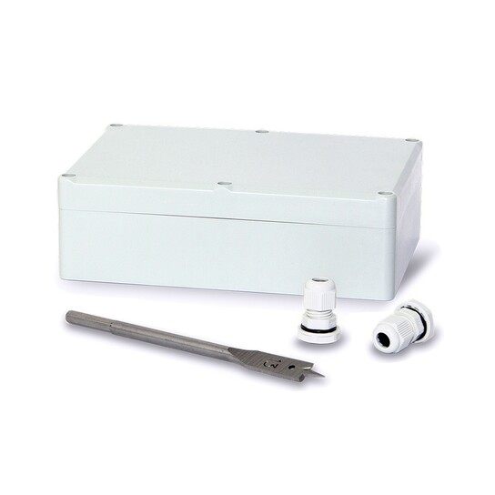 Součástí dodávky jsou 3 kabelové průchodky PG7 a vrták pro instalaci průchodek.