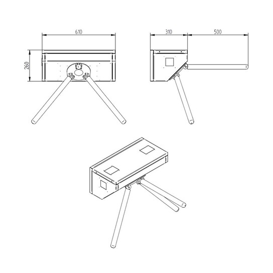 Nástěnný a obousměrný vstupní turniket s tripodovým mechanismem, který má úspornou konstrukcí s možností instalace i do menších do prostor.