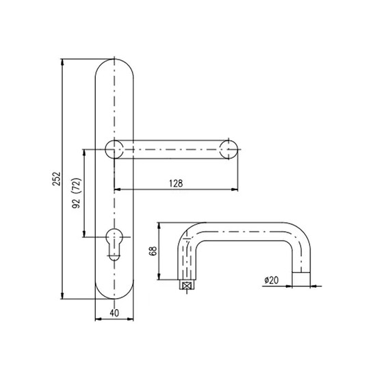 Bezpečnostní kování klika/klika, rozteč 92 mm, matný nerez, pro zámky ABLOY i YALE