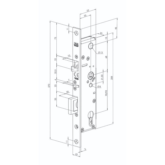 Elektromechanický samozamykací zámek úzký (Backset = 35mm), nebo široký (Backset = 55mm). Typ E/D/M. Rozteč 92 nebo 90mm. Pravé nebo levé provedení.