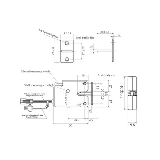 zámek skříňkový s vyhazovací pružinou a signalizací, kovové tělo 50x40x9.8 mm