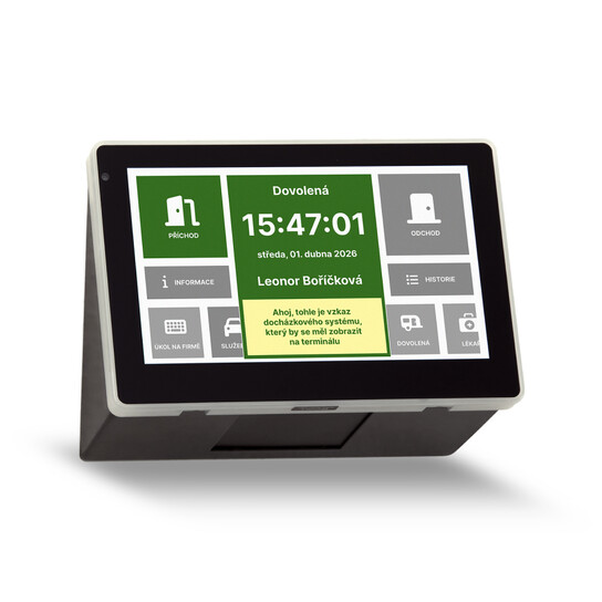 Komfortní terminál s dotykovým displayem GT800 nabízí přehledné zobrazení a rychlé ovládání především pro evidenci docházky. Veškeré zobrazení na d ...