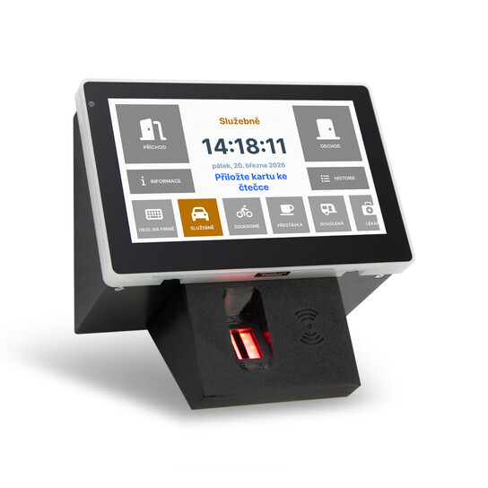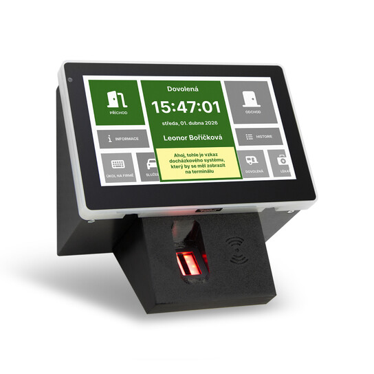 Komfortní biometrický terminál s dotykovým displayem GT800F nabízí přehledné zobrazení a rychlé ovládání především pro evidenci docházky. Veškeré zobrazení na displayi, včetně snadno nastavitelných zvuků, barev a grafických symbolů tlačítek, může být jednoduše uživatelsky definováno pro rychlou a přehlednou volbu operací. Umožňuje také zobrazení libovolných časových složek docházky, informací o přítomnosti osob a historie operací.