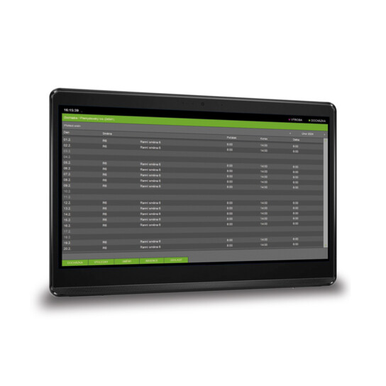 • možnost více aplikací (docházka, výroba, objednávka stravy)